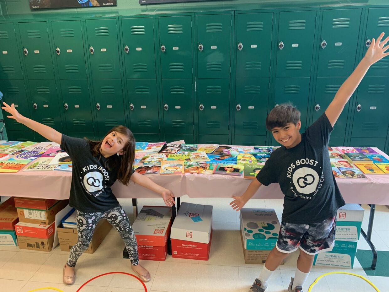 Kids Boost had their offices in Sandy Springs until the pandemic.  After 2020, they kept working remotely, but many of their participants still live in Sandy Springs and host fundraising events here in our community. A pair of Sandy Springs siblings who are passionate about reading and baking, secured baking supplies from local businesses, baked hundreds of treats, packaged them with their own logo, and sold them to friends and family to raise money to help less fortunate students get books to read through a nonprofit called Purpose Built Schools.  They raised over $1,000 which enabled them to help provide a book to every elementary student in a summer learning program.  They were onsite to personally help distribute these books to the students as well.  Another Sandy Springs youngster who wanted to help children without homes chose to support the Atlanta Children’s Shelter.  She organized a yard sale that also featured a bounce house and bake sale.  She turned her $100 start-up money into $3,262 and was super proud to present the giant check herself!